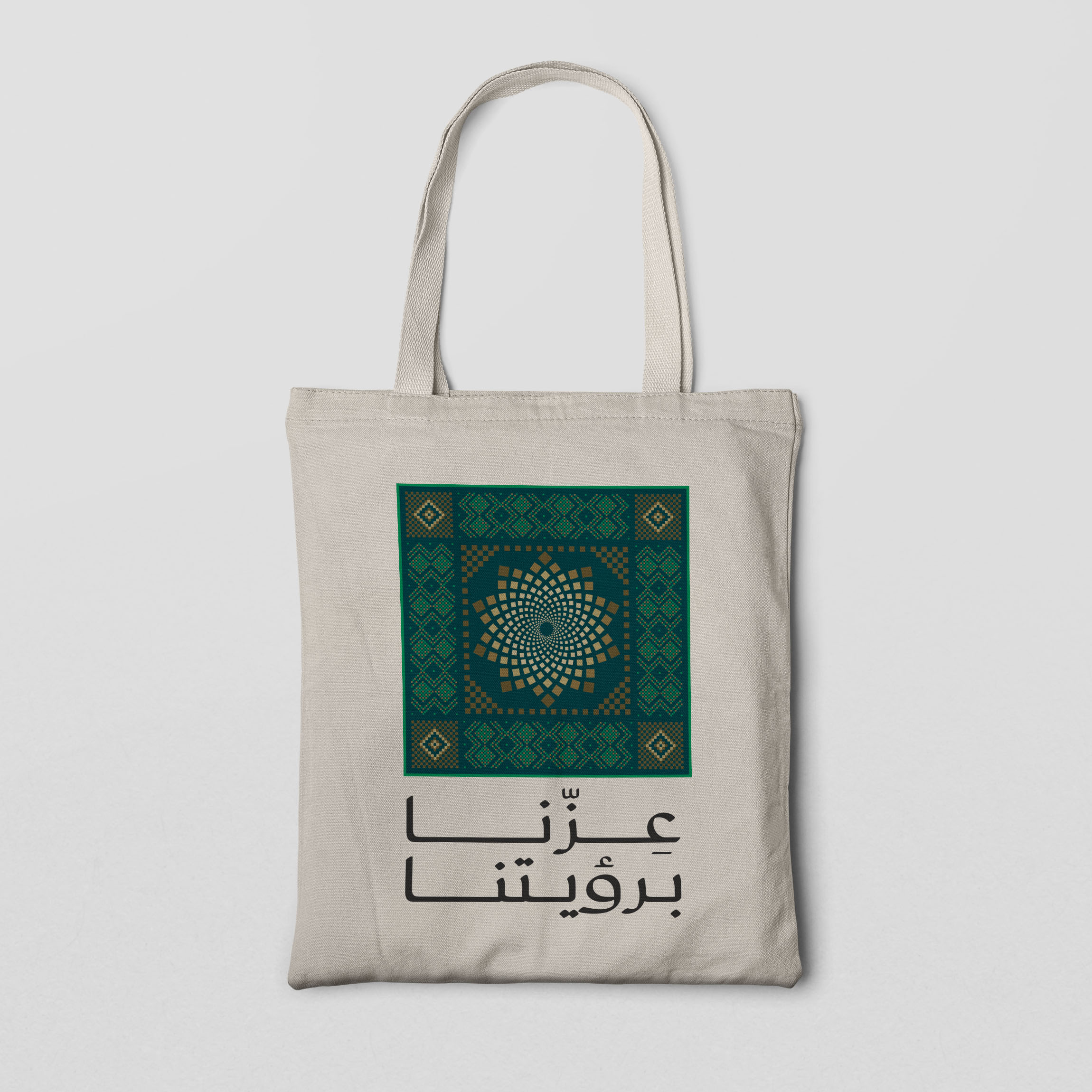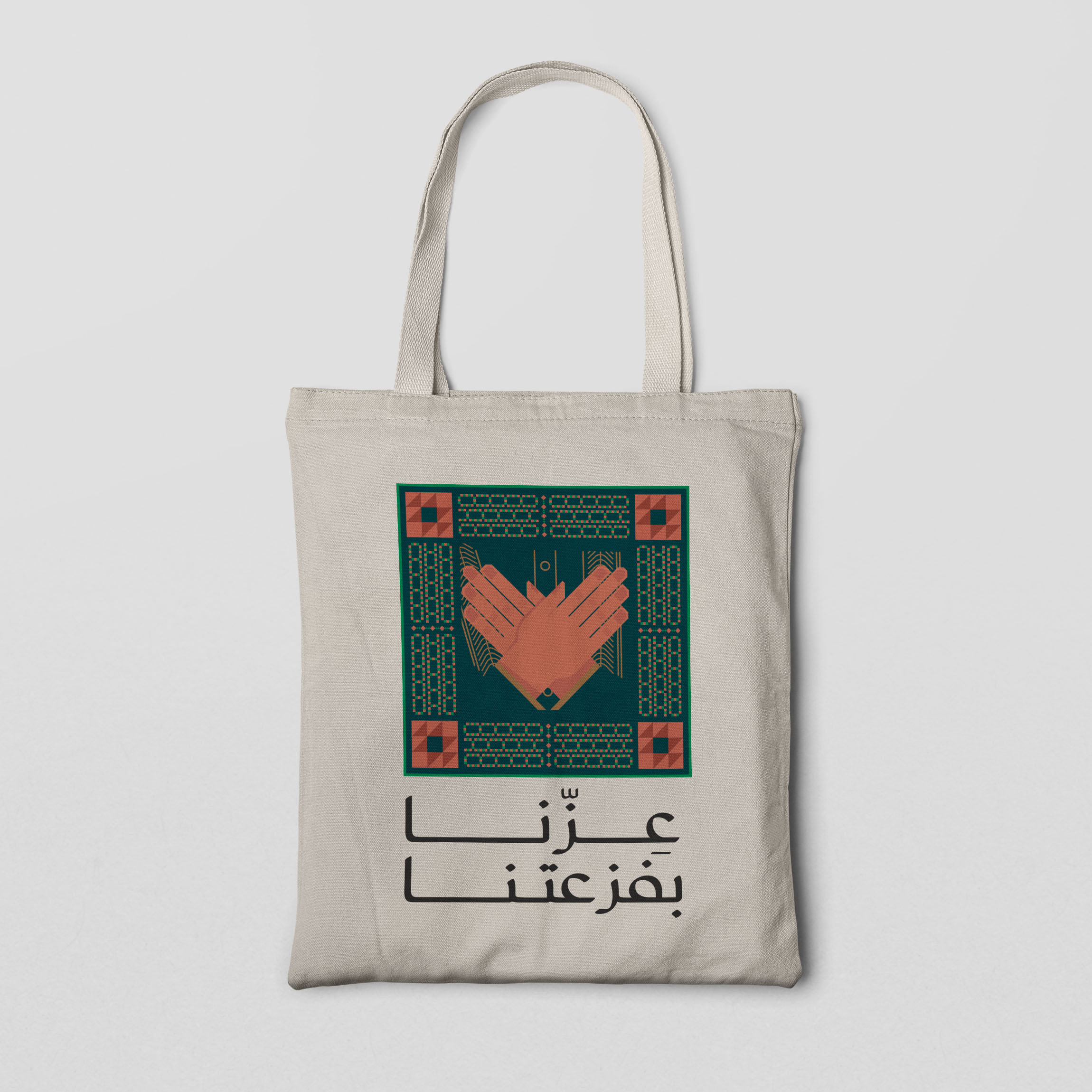 • Professional custom tote bag printing with the Saudi flag and national emblems